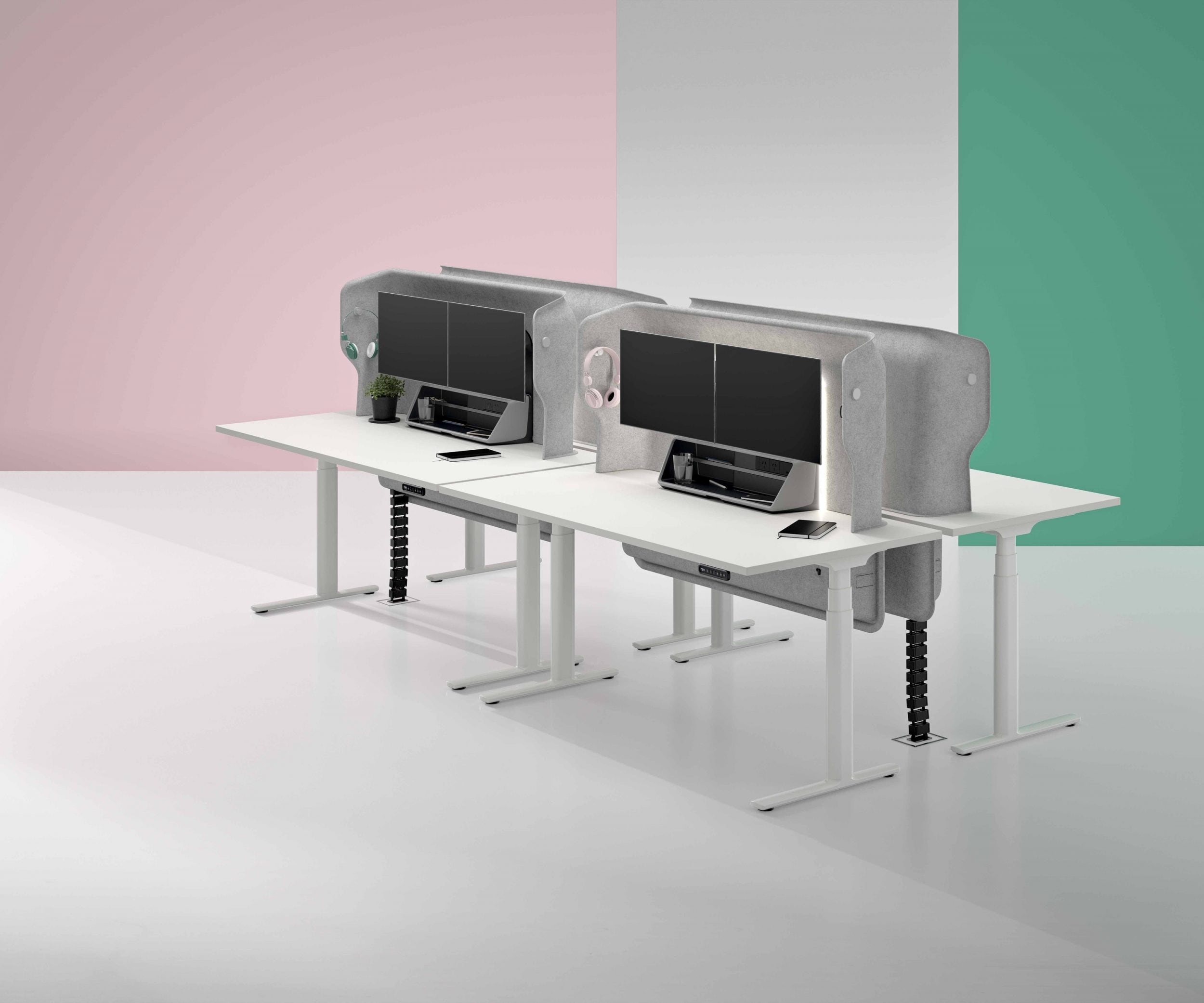 The wire management compartment doubles as a modesty panel, with a removable front cover for easy access to segregated power and data cables. Screenliner is perfect for agile work environments with wayfinding identification badges that can be used for seat allocation.
